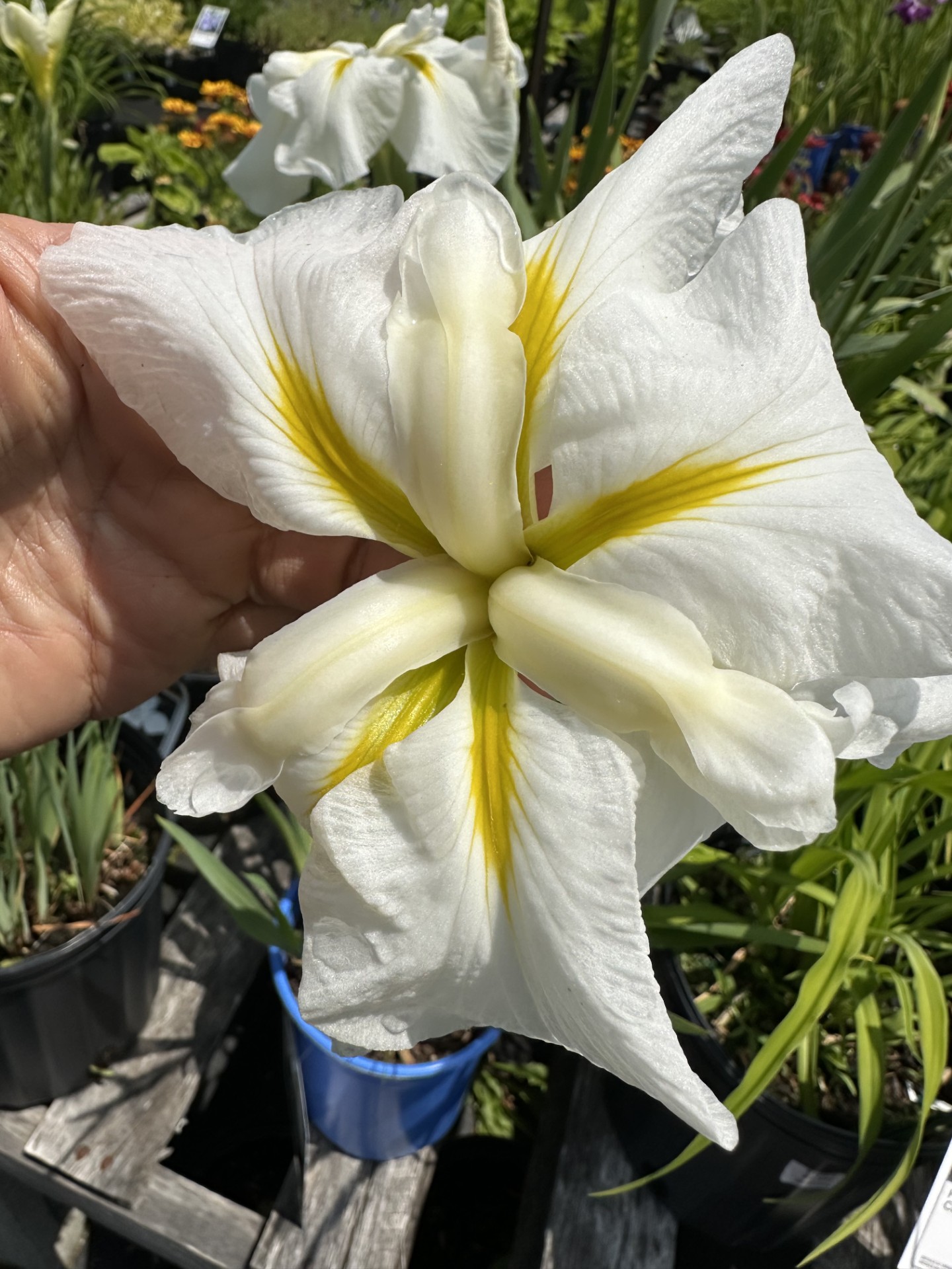![]() Iris ensata 'Gold Bound', immenses fleurs, affectionne les sols humides.Iris japonais gold boundImmenses fleurs blanc pur au centre ligné de jaune. 1 seul tige peut recevoir 3 immenses fleurs. Affectionne les sols humides. Floraison mi-juin à juillet. Zone de rusticité: 4 Dimensions: 60 à 90 cm haut x 60 cm large Ensoleillement: soleil ou mi-ombre Temps de floraison: mi-juin à juillet Couleur des fleurs: blanches et jaunes Couleur du feuillage: vert Utilisation: plate-bande, massif, haie basse, fleurs coupées. Croissance: rapide Taille: tailler à 10 cm en automne Sol: humide