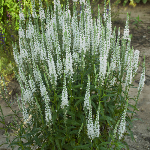 Veronica série 'Magic Show Enchanted indigo' et 'White Wand'VéroniqueSuperbes vivaces spectaculaires en massif. Floraison en longs épis sur des tiges solides. Pratiquement sans entretien. Zone de rusticité: 4 Dimensions: 45cm x45cm Ensoleillement: soleil ou mi-ombre Temps de floraison: juillet à l’automne Couleur des fleurs: bleu-violet ou blanc Couleur du feuillage: vert Utilisation: plate-bande, massif, pot en combinaison avec des annuelles. Croissance: rapide Taille: printemps ou automne Sol: bien drainé Arrosage: ne pas laisser sécher complètement Entretien: planter avec terreau de plantation, compost et micoryse.