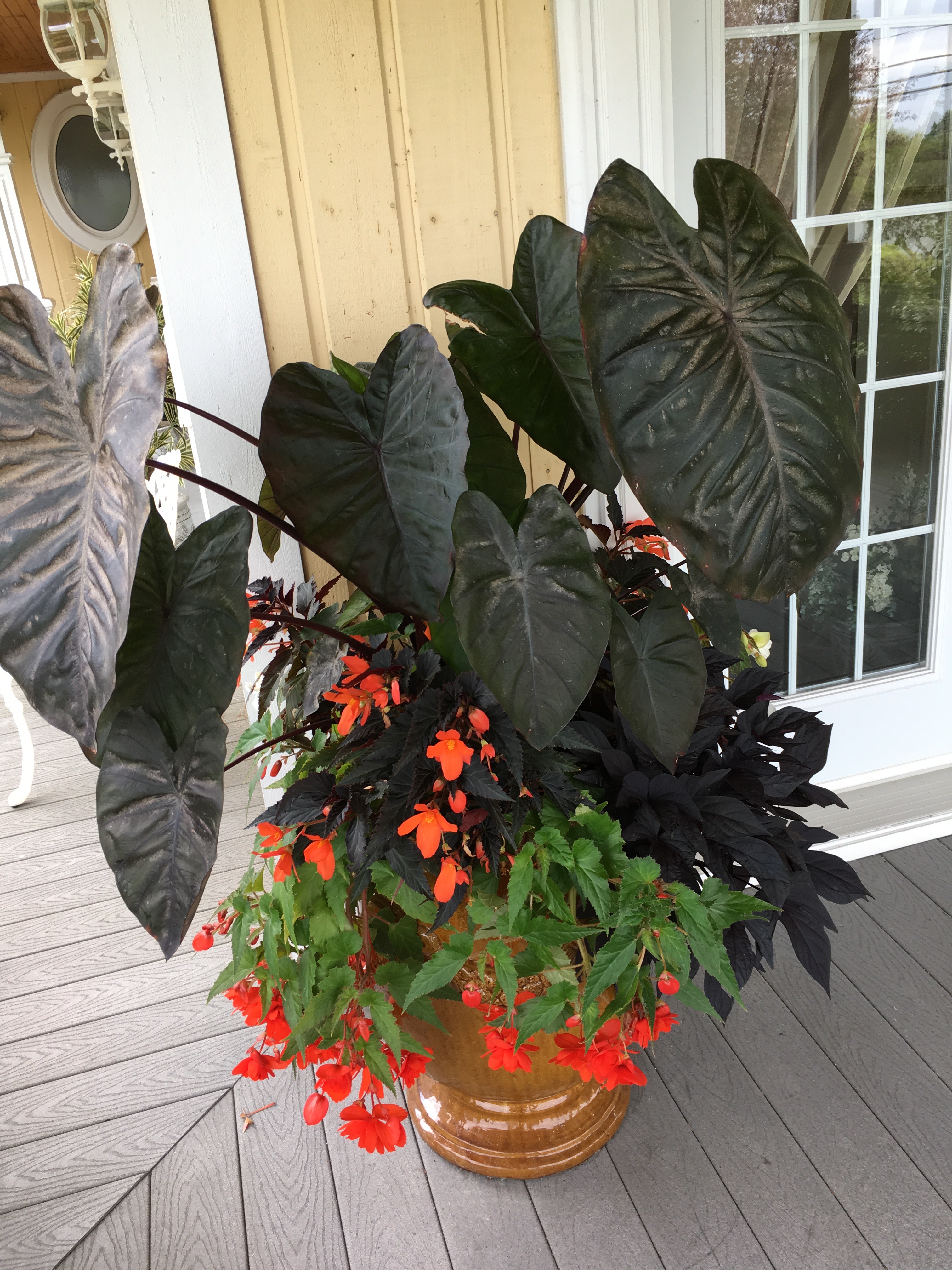 Colocasia 'Black Coral'Port dressé/érigé Dimensions: 1.2m haut x 1m large Utilisation: plate-bande, massif, pot en combinaison avec d'autres annuelles. Arrosage: garder humide mais non détrempé. Entretien: pour jardinier paresseux