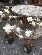 Magnolia stellata 'Royal Star'Magnolia Royal StarMagnifique arbuste à la spectaculaire floraison blanche double odorante avant ses feuilles très tôt au printemps. Feuillage vert lustré tournant au bronze en automne. Zone de rusticité: 5 Dimensions: 3m haut x 3m large Ensoleillement: soleil ou mi-ombre Temps de floraison: avril-mai Couleur des fleurs: blanches Couleur du feuillage: vert Croissance: lente Taille: Aucune necessaire Sol: frais Arrosage: garder le sol frais mais non détrempe