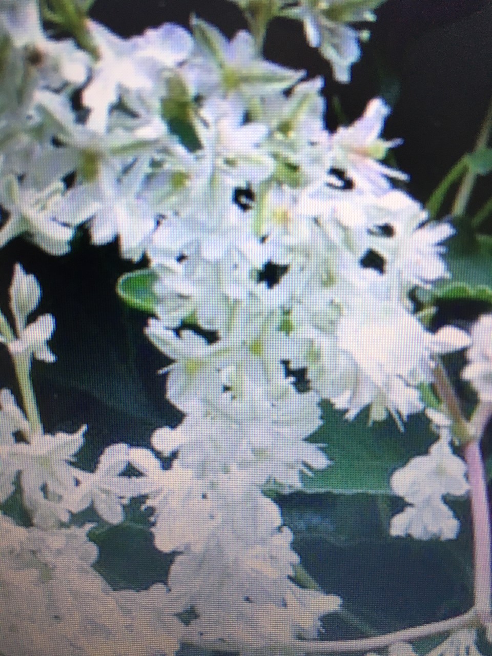 Polygonum fallopia 'Aubertii'Renouée grimpante ou renouée d'AubertFeuillage en forme de coeur bronze rouge devenant vert brillant. Superbe floraison abondante, odorante, en longs épis à l'aspect de nuages blancs. La plante s'enroule par elles-mêmes aux structures. Plantez-la à l'abri des grands vents d'hiver. Zone de rusticité: 5 Dimensions: 6m haut x 4m large Ensoleillement: soleil ou mi-ombre Temps de floraison: fleurit tout l'été Croissance: très rapide Sol: tolère les sols secs une fois établi.