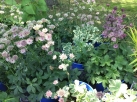 Astantia major, extrêmement florifère, fleurit tout l'été, sol humide, idéale bord de bassin. Nom commun: Grande astrance
