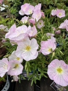 Oenothera speciosa 'Siskiyou Pink', fleurit tout l'été, feuillage rouge vif en automne , sol sec et aride. Nom commun: Onagre siskiyou pink