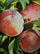 Prunier 'Vampire', japonais, autostérile, gros fruits rouges et verts, récolte fin août début septembre. Nom commun: