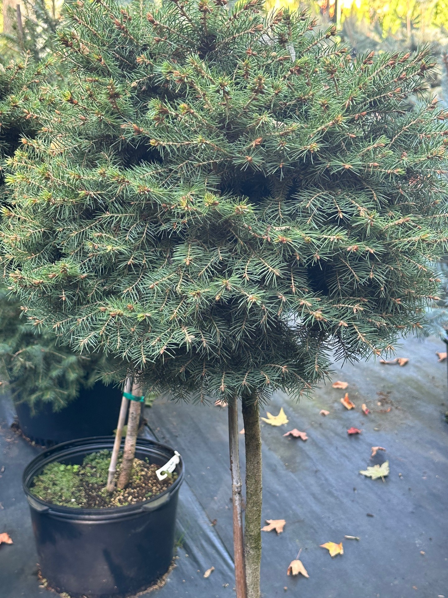 ![]() Picea abies 'Little Gem' sur tige, épinette miniatureÉpinette de Norvège little gemMignon et très petit conifère au feuillage compact et sur tige. Croissance extrêmement lente. Aiguilles vert tendre. Zone de rusticité: 4 Dimensions: 90cm haut x 60cm large Ensoleillement: soleil ou mi-ombre Couleur du feuillage: vert tendre Utilisation: spécimen, plate-bande et pot Croissance: extrêmement lente Taille: aucune Sol: frais et bien drainé. Arrosage: garder le sol frais mais non détrempé.