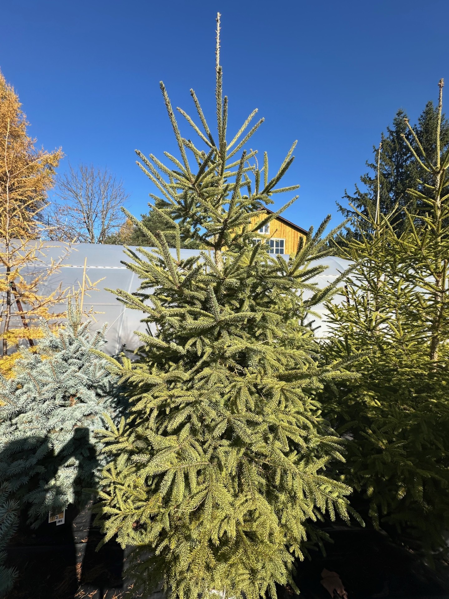 ![]() Picea glauca, grand conifère, pour grands espaces.Épinette blancheBeau gros spécimen extrêmement rustique sous climat et indigène au Québec. Port pyramidal et rameaux légèrement retombants. Tolérance au sols humides et à la pollution. Garde ses aiguilles en hiver. Zone de rusticité: 1 Dimensions: 20m haut x 6m large Ensoleillement: soleil Couleur du feuillage: vert Utilisation: Pour grands espaces, brise vent, en isolé, abri pour les oiseaux en hiver, décorations de noël. Croissance: lente Taille: aucune Sol: tolère les sols humides. Arrosage: garder le sol humide mais non détrempé.