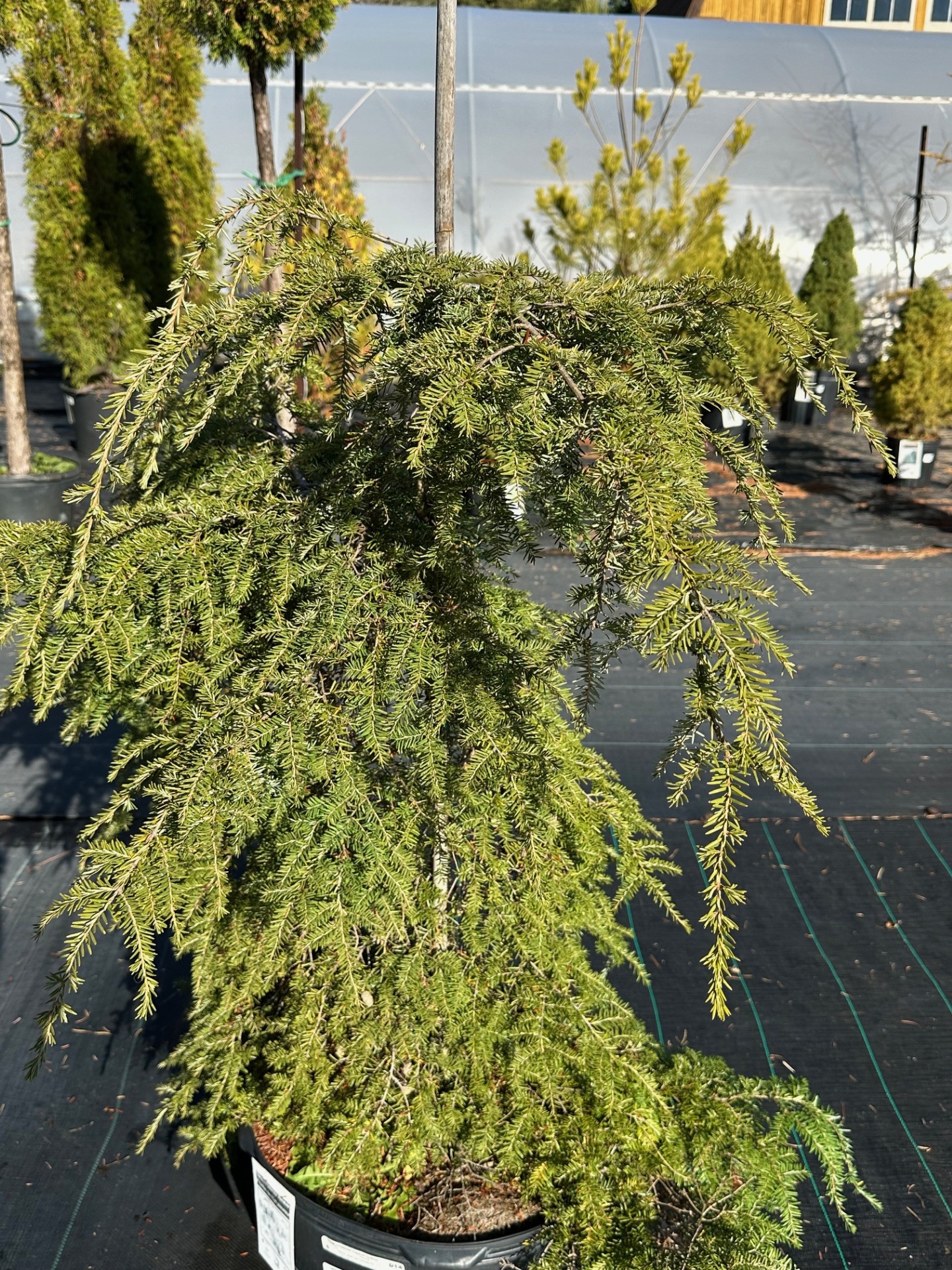 ![]() Tsuga canadensis 'Pendula', apprecie les sols humides et se plait autant au soleil qu'à l'ombre.Pruche du Canada pleureuseMagnifique spécimen au beaux rameaux retombant. La planter pour la mettre en évidence pour sa beauté et son élégance. Les pruches sont des conifère au feuillage persistant en hiver. Elles apprécient les sols humides et elles tolèrent tous les types de luminosités de l'ombre total au soleil ardent. Abriter des grands vents d'hiver ou couvrir. Zone de rusticité: 4 Dimensions: 4m haut x 4m large Ensoleillement: soleil ou mi-ombre ou ombre Couleur du feuillage: vert gris Utilisation: en isolé, plate-bande, Croissance: lente Taille: aucune Sol: tolère les sols humides. Arrosage: garder le sol frais mais non détrempé.