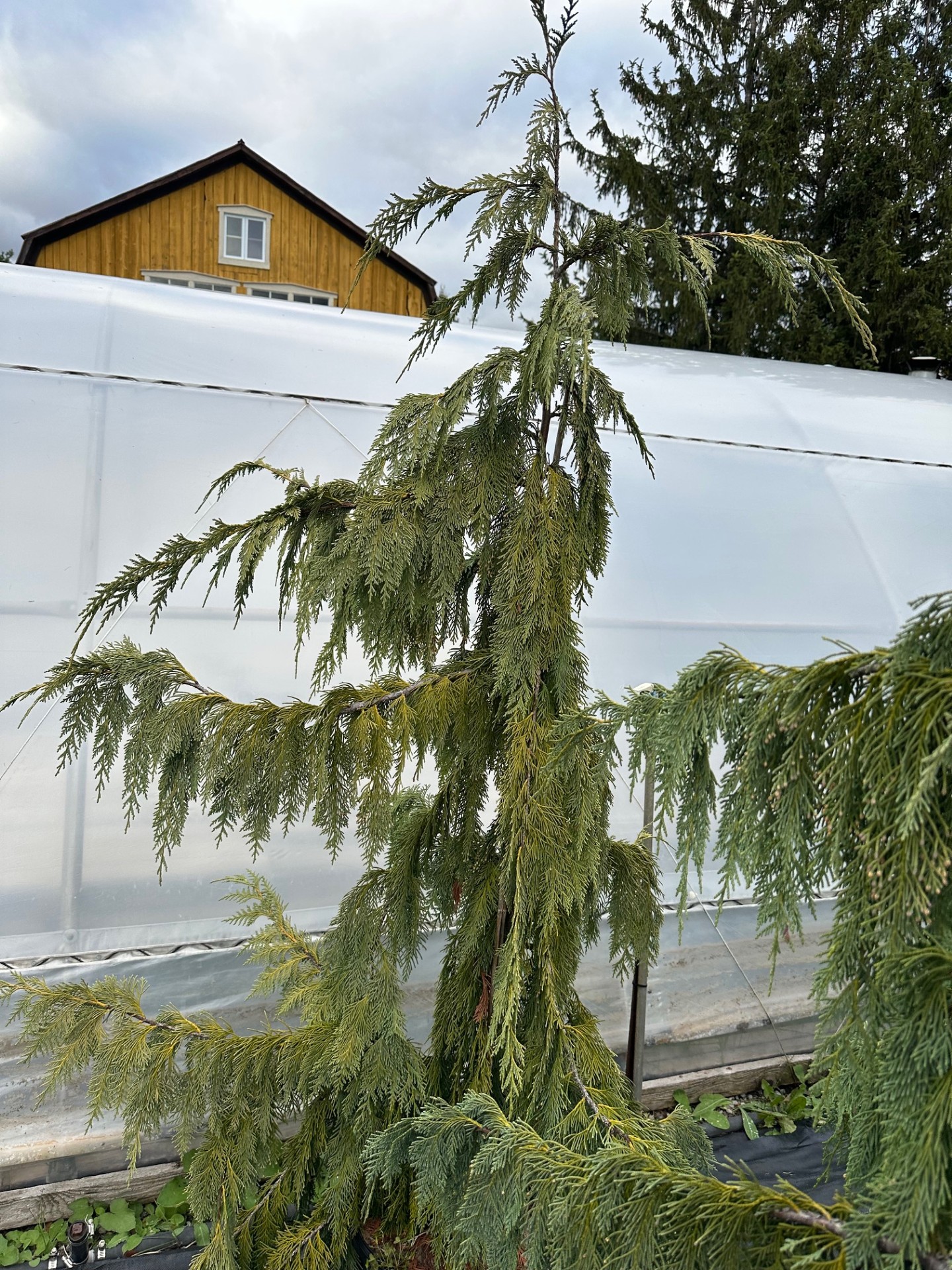 ![]() Chamaecyparis nootkatensis 'Pendula'Faux cyprès de Nootka pleureurCertains le surnomme l'arbre fantôme pour sa forme particulière. Ce conifère aux longs rameaux recourbés vers le haut se garni de gracieux rameaux pleureurs, plus courts ,formant des draperies et retombant le long des rameaux principaux. Effet spectaculaire. Planter à l'abri des grands vents d'hiver ou couvrir. Zone de rusticité: 5 Dimensions: 5m haut x 3m large Ensoleillement: soleil ou mi-ombre Couleur du feuillage: vert bleuté Utilisation: spécimen, écran, le long d'une allée, pour cacher des endroits disgracieux. Croissance: lente Taille: aucune Sol: frais et bien drainé. Arrosage: garder le sol frais mais non détrempé.