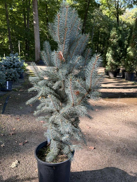 ![]() Picea pungens ' BlueTotem', port très mince, feuillage bleu poudre, idéal pour endroits restreints.Épinette du Colorado blue totemPetite épinette à la forme d'une colonne très étroite et au feuillage bleu poudre. Idéal pour endroits restreints. Garde ses aiguilles en hiver. Zone de rusticité: 2 Dimensions: 5m haut x 1m large Ensoleillement: soleil ou mi-ombre Couleur du feuillage: bleu Utilisation: point focal, haie étroite, écran Croissance: lente Taille: aucune Sol: frais et bien drainé. Arrosage: garder le sol frais mais non détrempé.