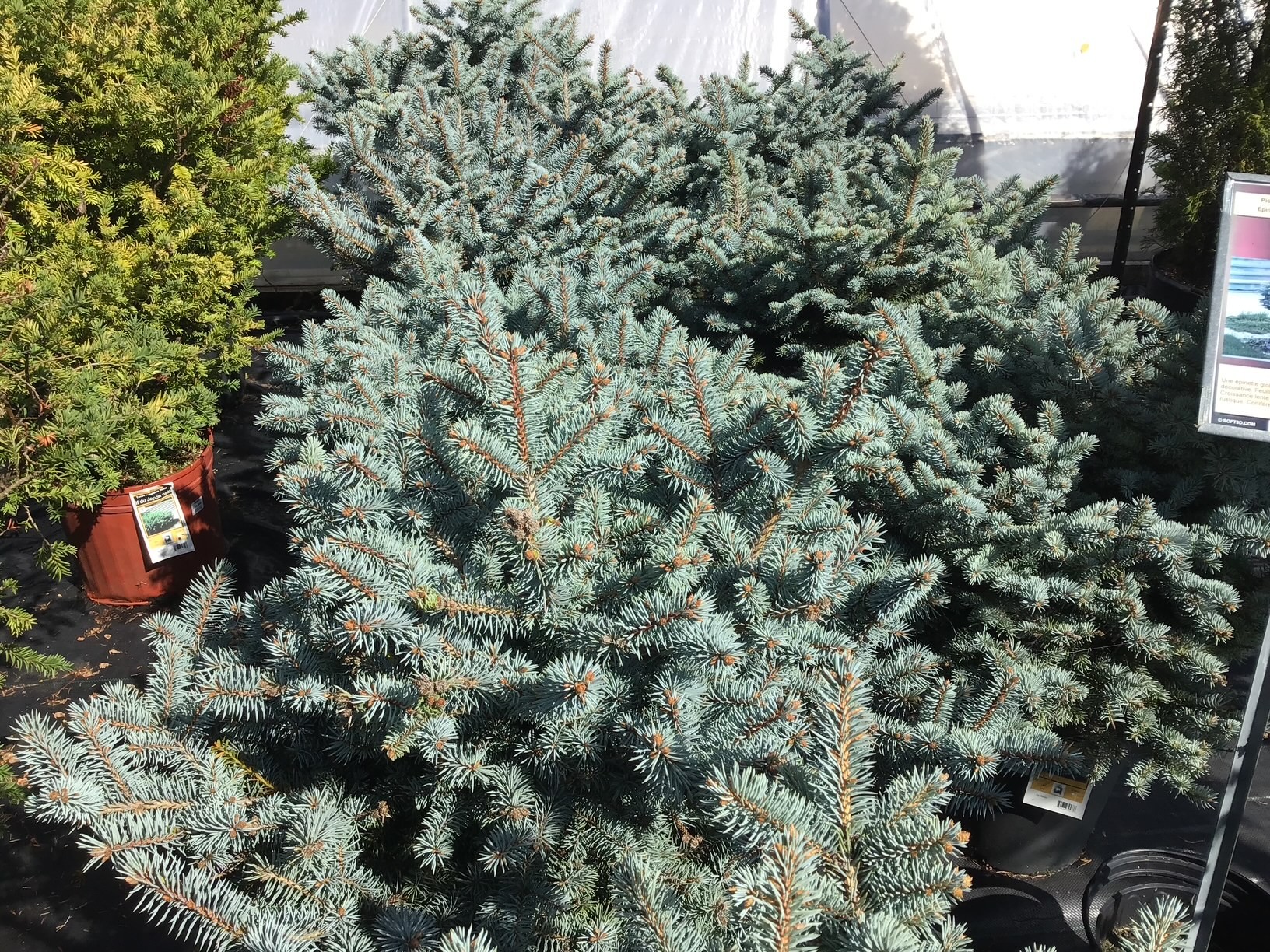 ![]() Picea pungens 'Thume', épinette miniature au feuillage bleu.Épinette du Colorado thumeÉpinette miniature au feuillage compact, bleu et persistant en hiver apportant de l'éclat toute l'année. Zone de rusticité: 2 Dimensions: 1m haut x 1m large Ensoleillement: soleil ou mi-ombre Couleur du feuillage: bleu Utilisation: plate-bande, le long d'un sentier et haie courte Croissance: lente Taille: aucune Sol: frais et bien drainé. Arrosage: garder le sol humide mais non détrempé.