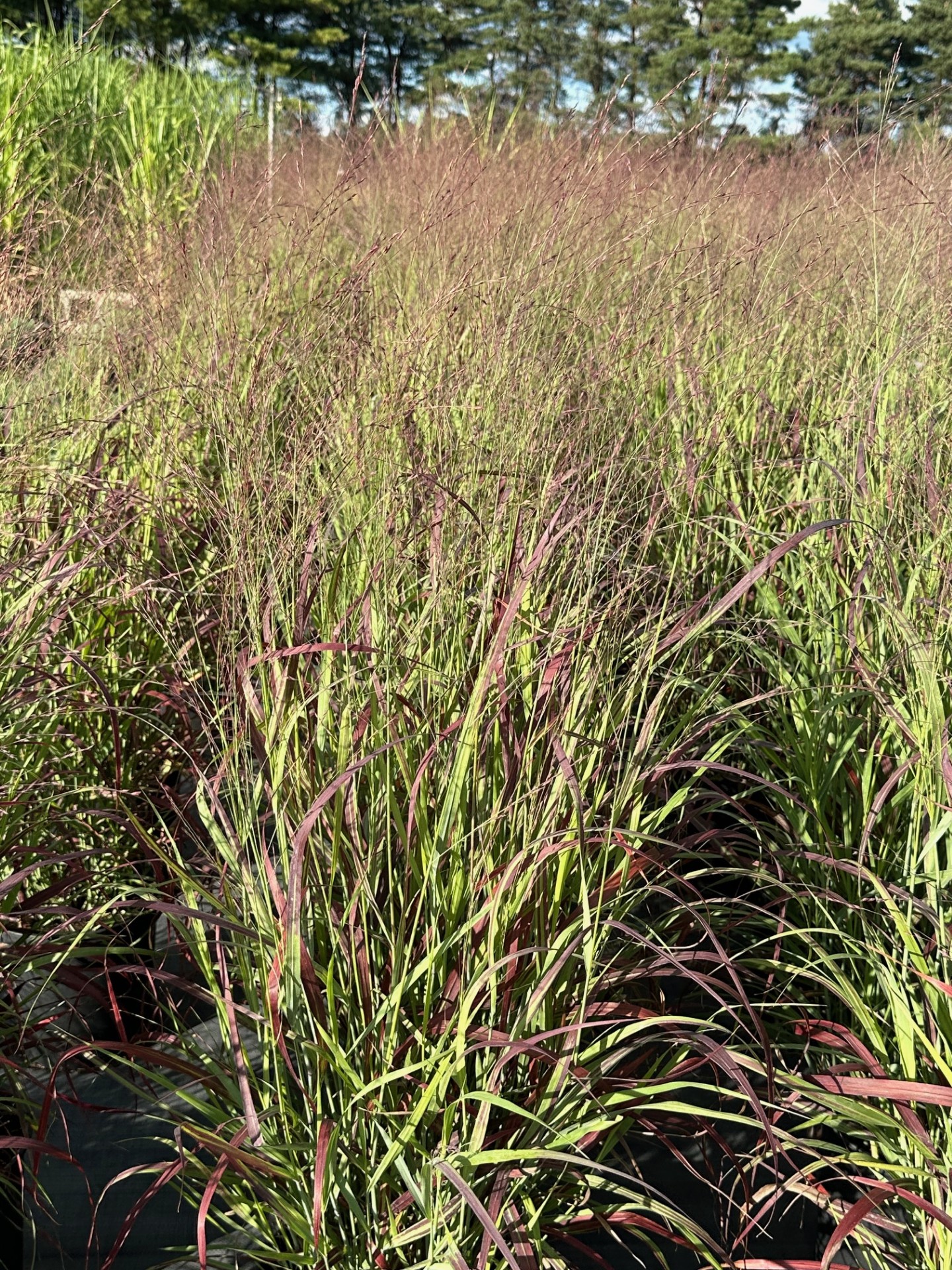 Panicum virgatum 'Blood Brothers',étroit, feuillage teinté de rouge, floraison en nuage rougeâtre.Panic érigée blood brothersBeau feuillage émergeant vert bleuté au printemps tournant au rouge bourgogne et s'intensifiant tout au long de la saison. Floraison formant un nuage rougeâtre au dessus du feuillage. Tolérant la sécheresse une fois établie. Zone de rusticité: 4 Dimensions: 1.2 à 1.5m haut x 60 à 75 cm large Ensoleillement: soleil Temps de floraison: août à octobre Couleur des fleurs: rougeâtre Couleur du feuillage: vert bleuté tournant au rouge Utilisation: plate-bande, massif, haie basse, pot, spécimen et pour cacher des endroits disgracieux. Croissance: rapide Taille: en automne ou tôt au printemps Sol: tolère les sols secs une fois établi. Entretien: aucun