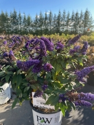 Buddleia daidii 'Pugster Blue', nain, floraison de juin à septembre, parfumée, attire papillons et colibrisArbuste aux papillons pugster blueC'est un gros wow! Les Buddleias de la série Pugster sont MAGNIFIQUES! Arbuste compact arrondi et nain extrêmement florifère. Fleurs parfumées en gros épis bleu mauve portées par des branches très solides. Attirant papillons et colibris à profusion. Idéal en fleurs coupées Zone de rusticité: 4 Dimensions: 60cm haut x 90 cm large Ensoleillement: soleil Temps de floraison: juin à septembre Couleur des fleurs: bleu mauve Couleur du feuillage: vert allongé et pointu au dessous grisâtre. Utilisation: fleurs coupées, pot, haie basse, massif, plate-bande et spécimen. Croissance: rapide Taille: rabattre en automne Sol: tolère les sols secs ou humides. Résistant au sel de rue. Entretien: enlever les fleurs fanées.